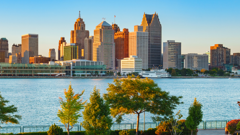 Stroll the Detroit Riverwalk: Enjoy walking or biking along the revitalized riverfront offering beautiful views of the Detroit skyline and the Ambassador Bridge to Canada. Relax in parks and plazas along this scenic urban pathway.